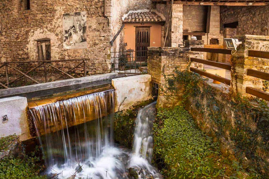 In foto il piccolo e caratteristico villaggio di Rasiglia con i suoi corsi d'acqua (18 Km da Sellano)